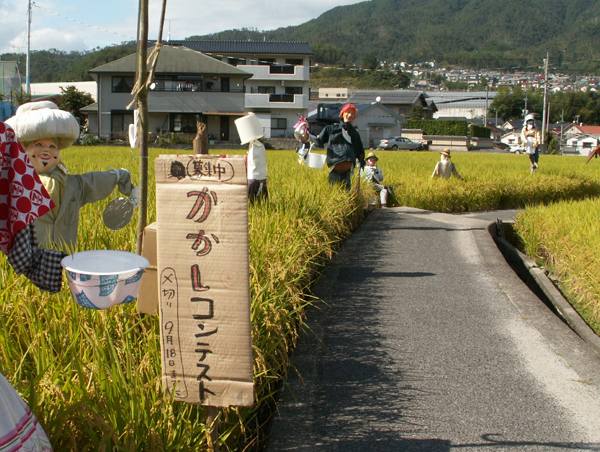 | おそらく田の持ち主が個人で開催されたものと思われます。投票箱もありましたので、ちゃんと投票して来ました。(気持ち悪いのもあり・・・) 結果発表がありました。(10月中旬) |