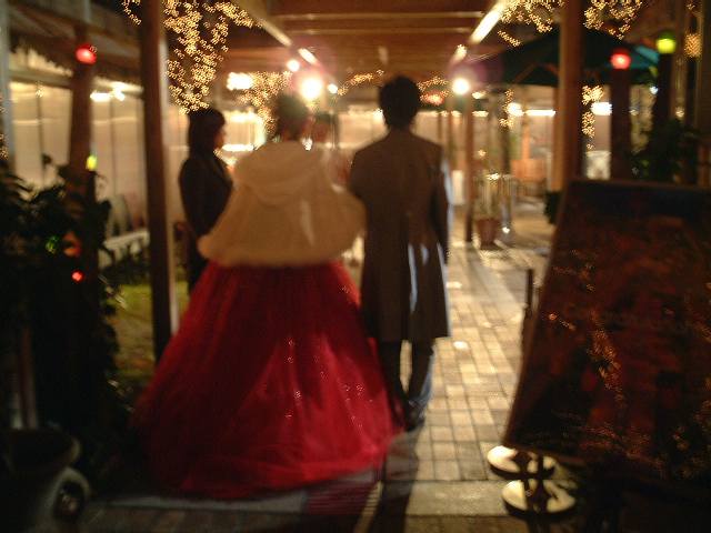 2003/12/13 呉ポートピア公園で開催中の呉イルミナーレに行きました。 腕が悪くてちゃんと写っている写真が無いんですけど、 クリスマス気分を味わっていただけたら・・・。 (ちゃんと写った写真は1枚だけ。サムネイル表示のままの方が綺麗です。) 公園内のレストランで結婚披露宴が行われていて、思わず写しちゃいました。 お幸せに!! 私たちも幸せのおすそ分けを頂いちゃいましょう。