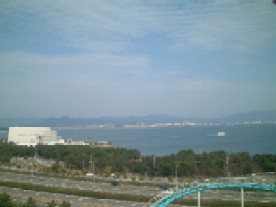 | 左の白い建物はマリンワールド(水族館) | ずっと向こうに福岡タワーと福岡ドームも見えます |