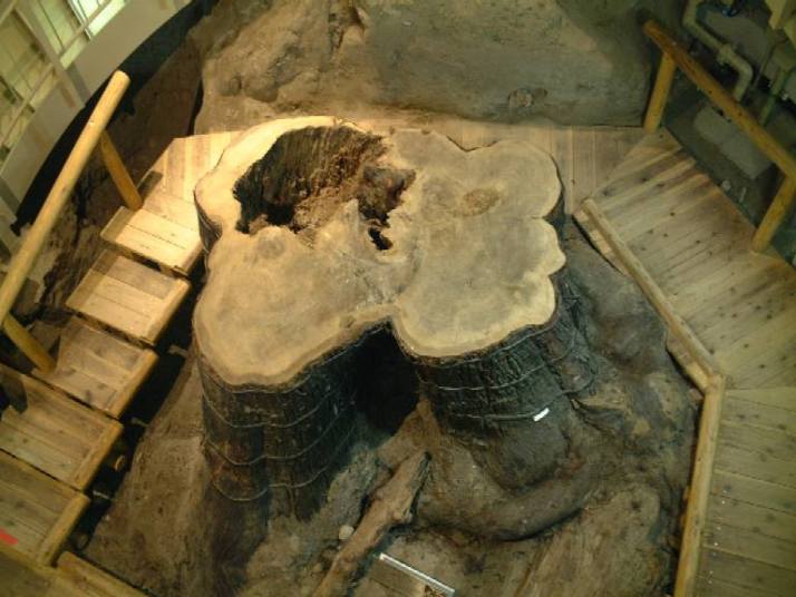 田んぼの下から見つかった縄文時代の杉やケヤキなどに