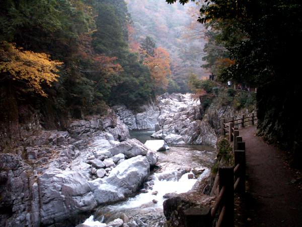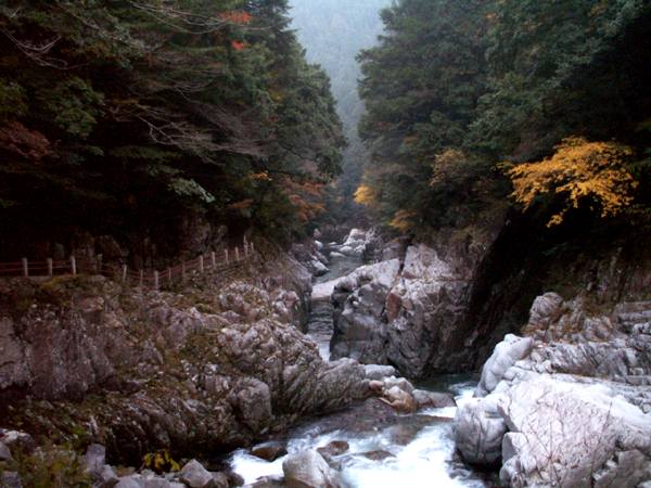 秋の日はつるべ落とし・・・あっという間に暗くなっちゃって、三段峡のほんのさわりの部分の散策をしただけに終わりました。 ここも、台風の爪跡があちらこちらに。。。紅葉が今ひとつなのも、台風のせいみたい。 でも、2日続けてオゾンたっぷり吸収です。