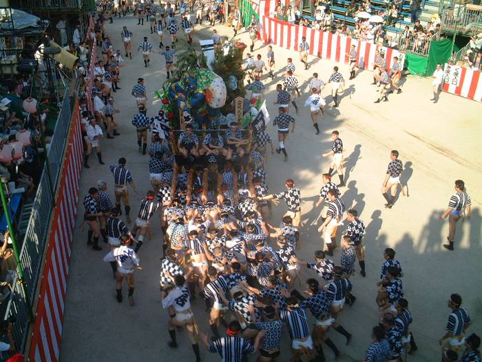 紺色の水法被を用いているが多く、ひときわ目立ちます。