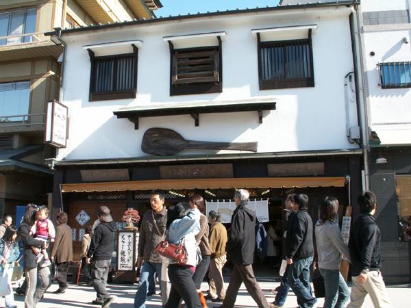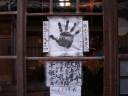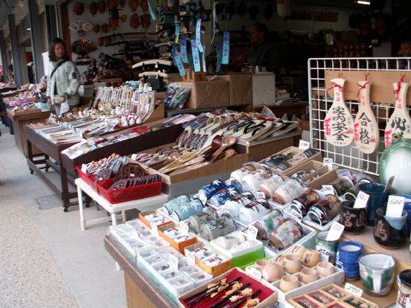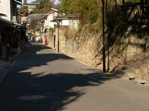 | 御土産屋さん | 土砂災害のあった場所。 石垣に泥の跡が・・・ |