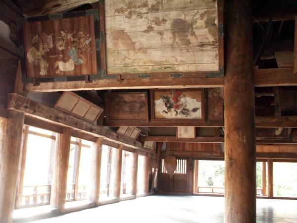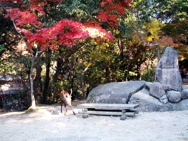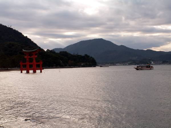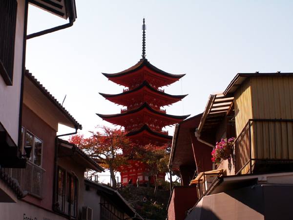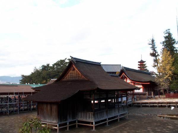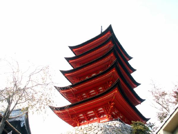 | 豊臣秀吉が着手させましたが秀吉の死によって未完成のまま | 真下から | 厳島神社越し | ||