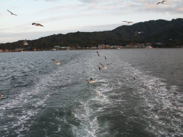 夕日が沈む頃、帰りのフェリーに乗りました。