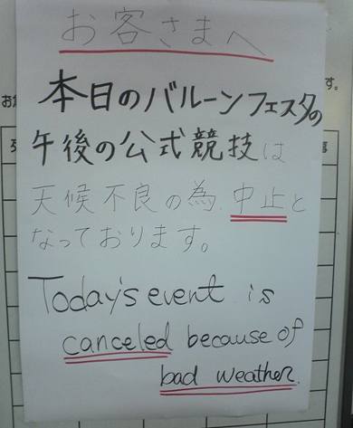 そんな事も思い出しながら勇んで佐賀駅に・・・しかし・・・空はこんなに青いのに・・・天候不良で中止の張り紙。