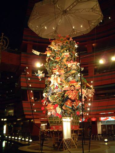 飾り山とは、男たちが舁く山笠と違い人形で歌舞伎の名場面、古戦記、童話、人気のアニメなどを再現し