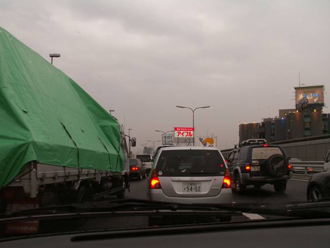 目的地は大阪。近づくと、いきなり渋滞です。