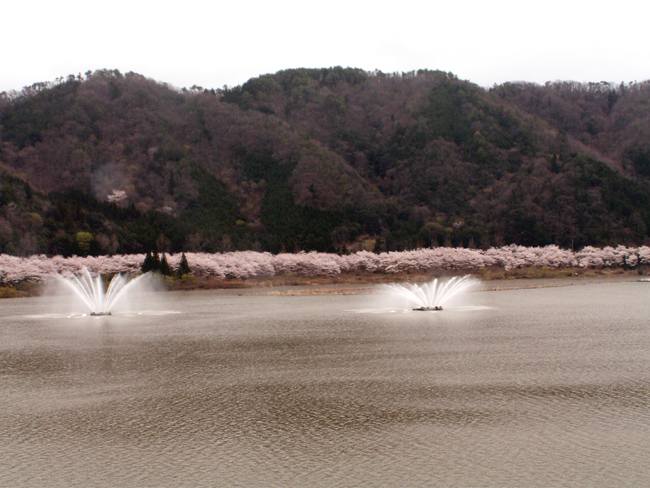 土師ダムのダム湖、八千代湖周辺には約6,000本の桜が植えてあります。