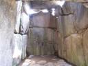 被葬者は、古代にこの地で最大の勢力を誇っていた蘇我馬子というのが最も有力な説ですが、確証はなく、上部の盛り土がないのは蘇我氏の悪行を懲罰するためにはぎ取られたという説もあるそうです。