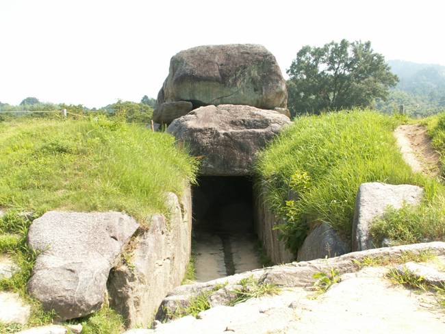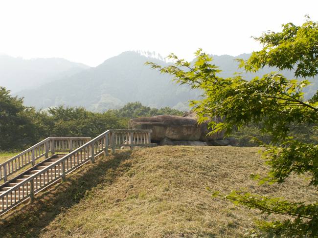 この古墳は、盛り土の上部がなくなり、玄室部の天井石と側壁の上方が露出していて天井石が平たいので、古くから石舞台と呼ばれているようです。