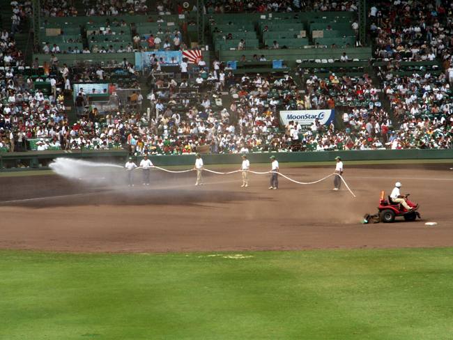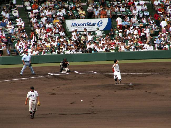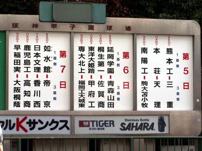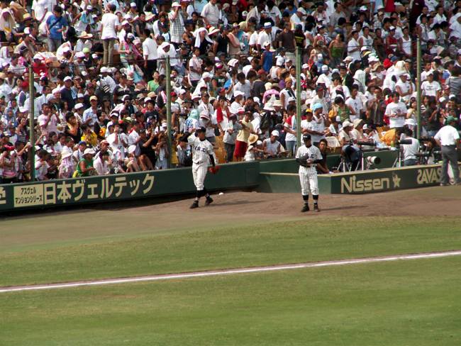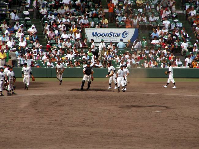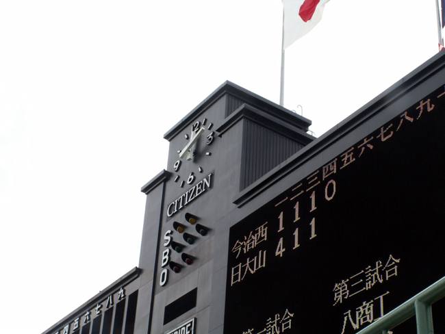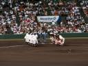 | お目当ては沖縄の八重山商工。 でも、前の試合がまたいい試合で延長。 最後まで見る事が出来ず、後ろ髪を引かれる思いで球場をあとにしました。 |