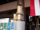 途中見た宮島口の工事中マンションの養生シートには鳥居が。粋な計らいです。 |