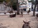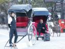 いつもの鹿とのお迎えと、人力車2台も。。。おじさんのちょん髷、地毛です。 |