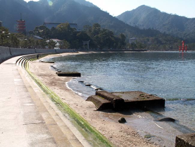 海岸を通って厳島神社へ・・・潮が満ちはじめていました