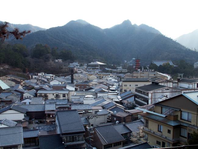 | 100段の階段を上がった宮尾城跡(厳島合戦跡)から商店街を眺めて・・・ |