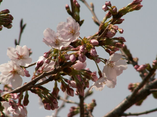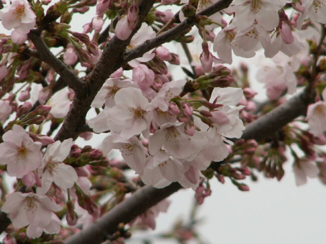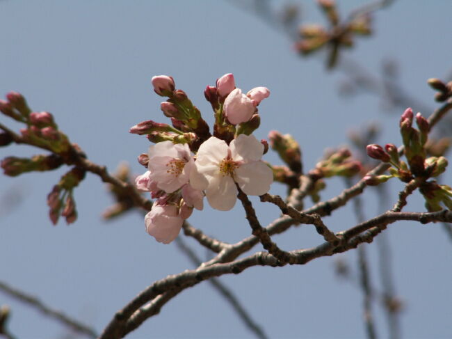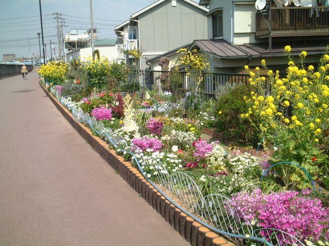 ご近所の方が管理されているようすの花壇は花がいっぱいです。 咲き始めた桜にはメジロが蜜を吸いにきていましたが、写真は失敗。 ムクドリは何とか写ってくれていました。 次ぎにこの道を歩くのはいつかなぁ。。。